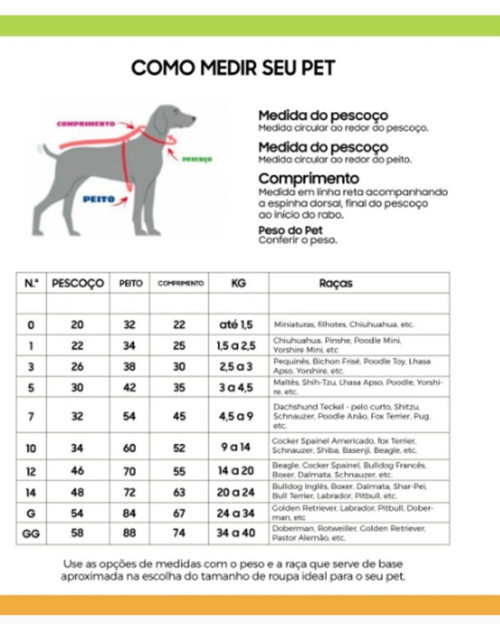 **Antes de comprar meça seu pet conforme a imagem disponibilizada e depois consulte a tabela de medidas, para selecionar o tamanho certo da roupinha.