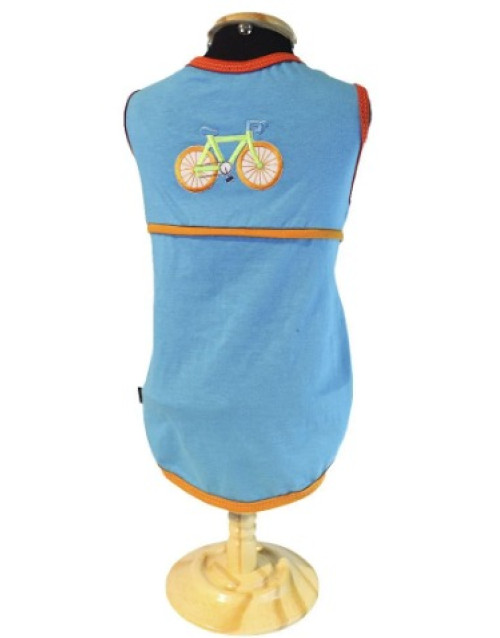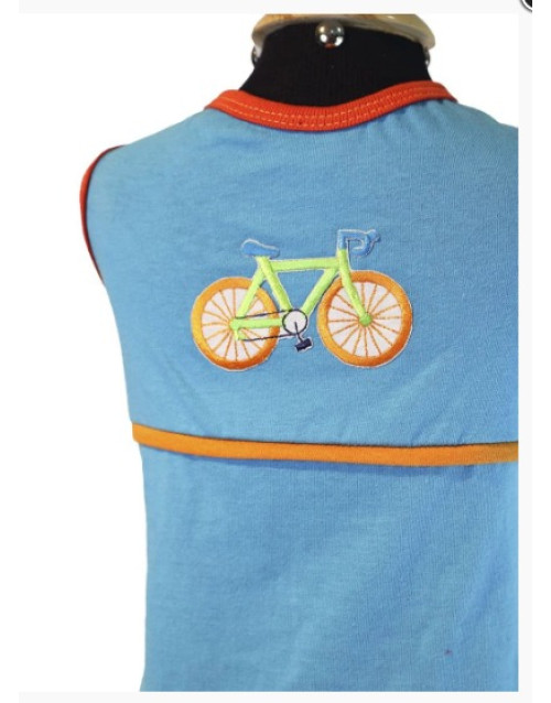 • Roupinha na cor azul bebê, com aplique de bicicleta